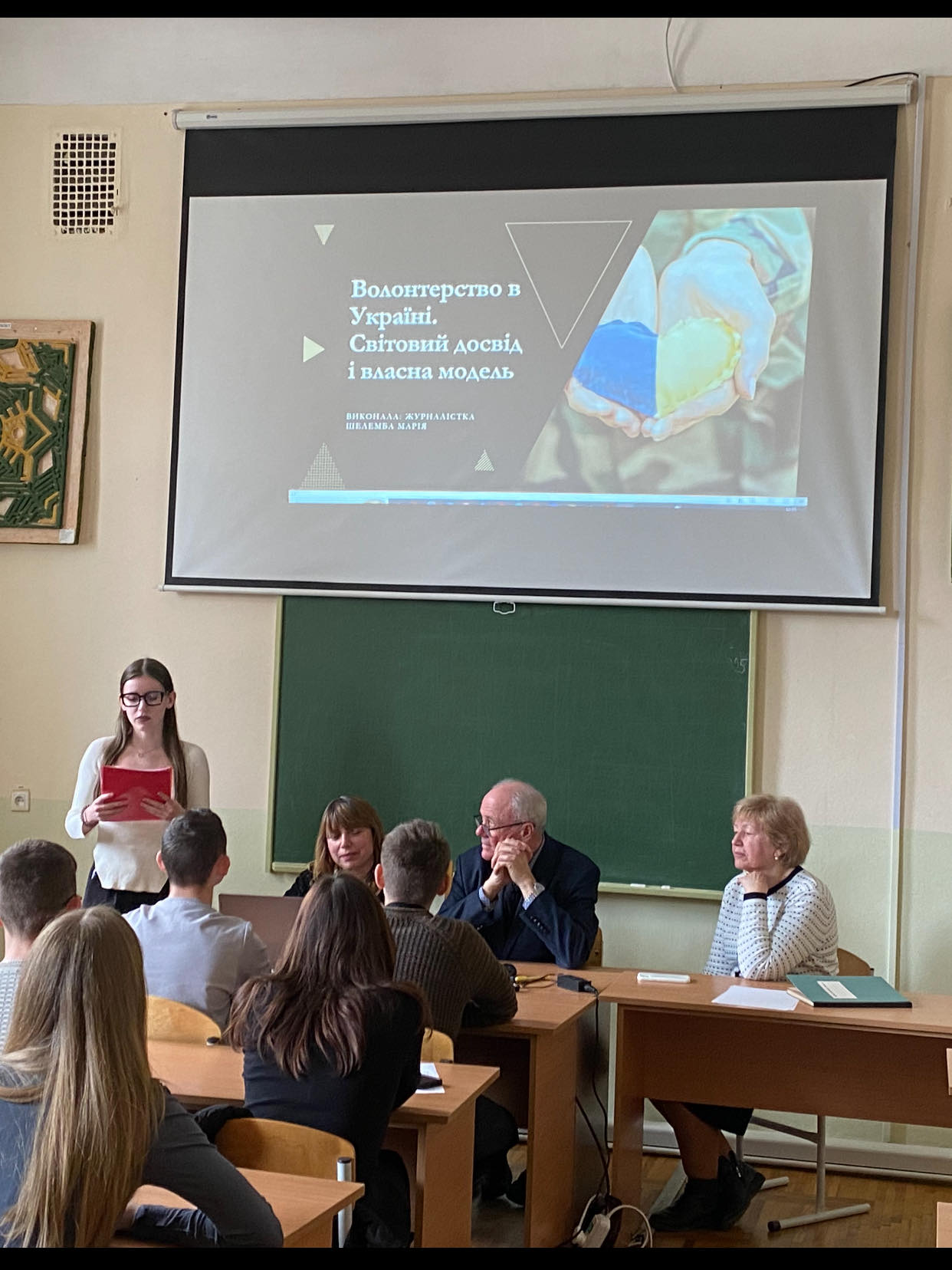3 місце — Марія ШЕЛЕМБА. Тема дослідження «Волонтерство в Україні. Світовий досвід і власна модель» (науковий керівник — доцент кафедри журналістики та мовної комунікації Ніна СТЕПАНЕНКО).