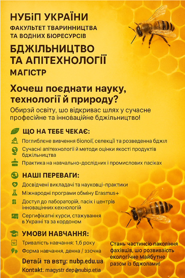 Освітньо-професійна програма «Бджільництво та апітехнології» спрямована на підготовку висококваліфікованих магістрів, здатних комплексно вирішувати наукові, виробничі та управлінські завдання у сфері сучасного бджільництва з урахуванням принципів сталого розвитку, біобезпеки та збереження біорізноманіття. Програма поєднує фундаментальну теоретичну підготовку з практикоорієнтованим навчанням і формуванням дослідницьких навичок.