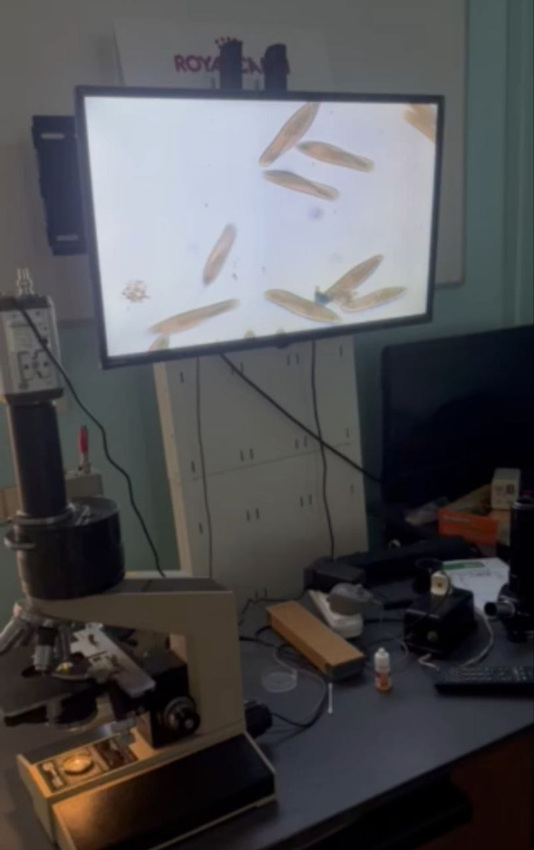Наступною зупинкою стала аудиторія з мікроскопами. Тут діти мали можливість зазирнути у мікросвіт, який не видно неозброєним оком, й побачити інфузорій, гідр, дафній, комах, кліщів і навіть гельмінтів.