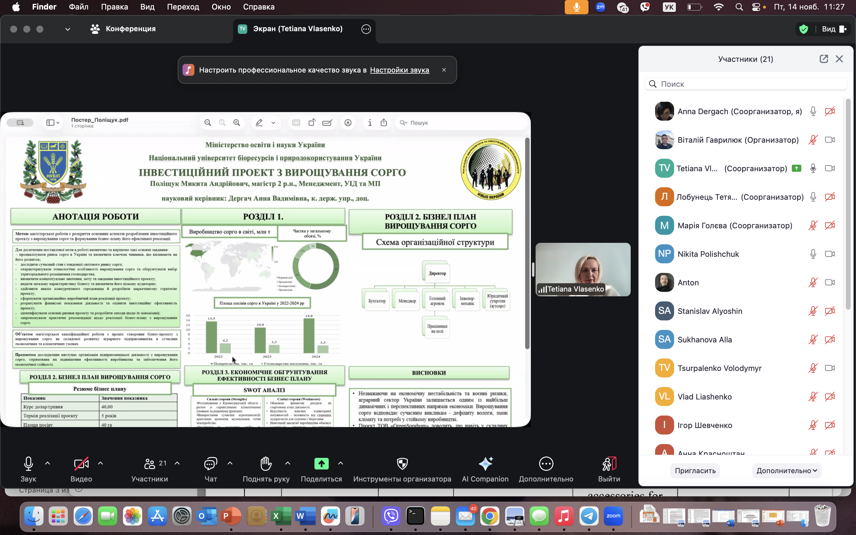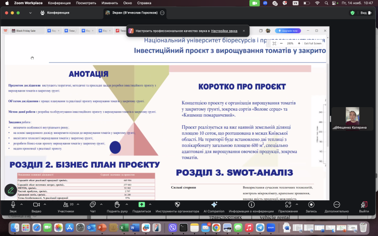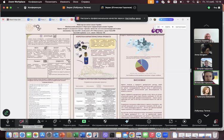 14 листопада 2025 року на кафедрі виробничого та інвестиційного менеджменту відбулась постерна презентація результатів магістерських кваліфікаційних робіт здобувачів другого (магістерського) рівня вищої освіти спеціальності 073 «Менеджмент» освітньої програми «Управління інвестиційною діяльністю та міжнародними проектами.