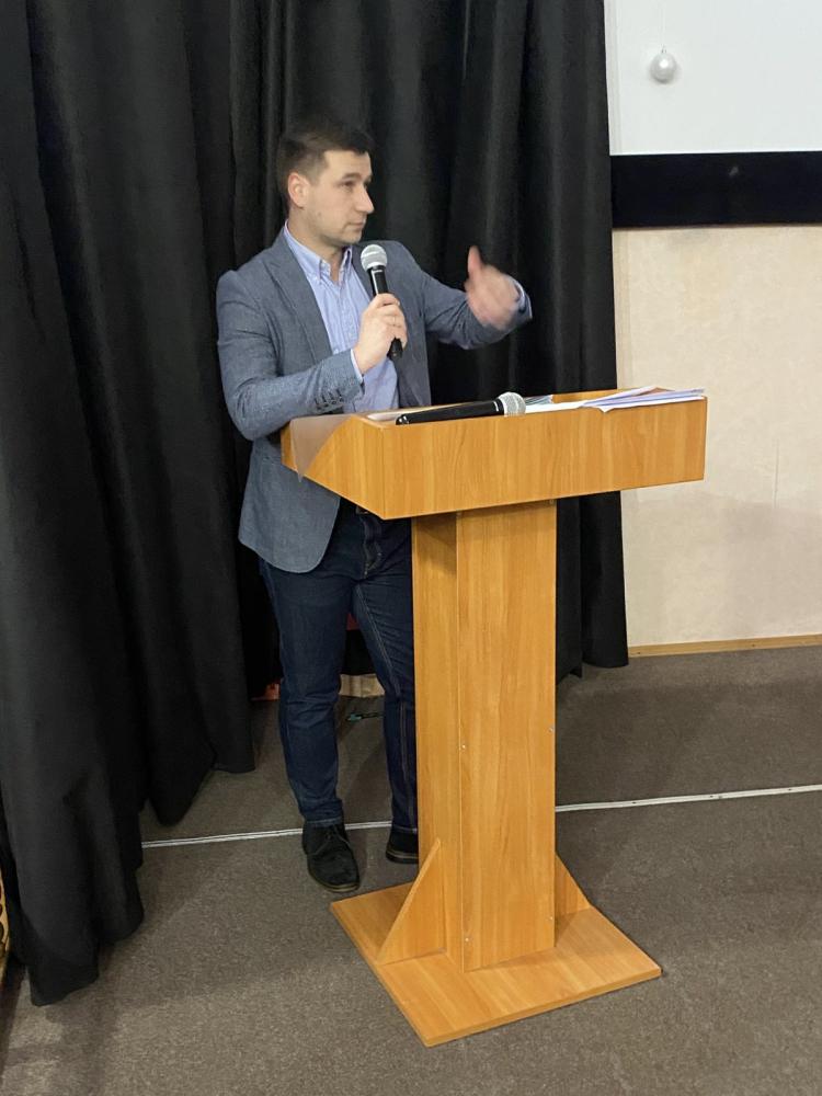 Начальник відділу позашкільної освіти та виховання Наталія КУЧЕР радо привітала представників університету: керівника центру розвитку кар’єри Сергія КОВАЛЕВСЬКОГО, декана факультету аграрного менеджменту Валерія БОНДАРЕНКА та доцента кафедри виробничого та інвестиційного менеджменту Катерину АЛЕКСЕЄВУ, передавши їм слово для презентації спільних ініціатив.