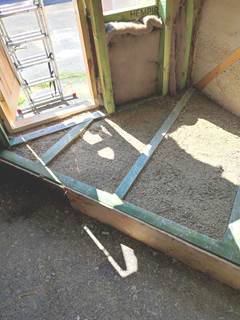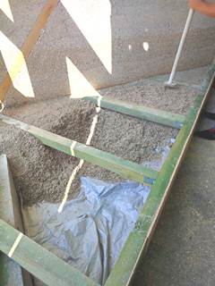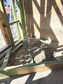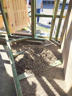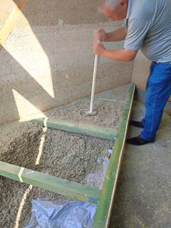 За цей тиждень вдалося змонтувати та заповнити конструкцію підлогового покриття із використанням конопляної костри "Hempire" та вапняного в'яжучого "5 елемент".