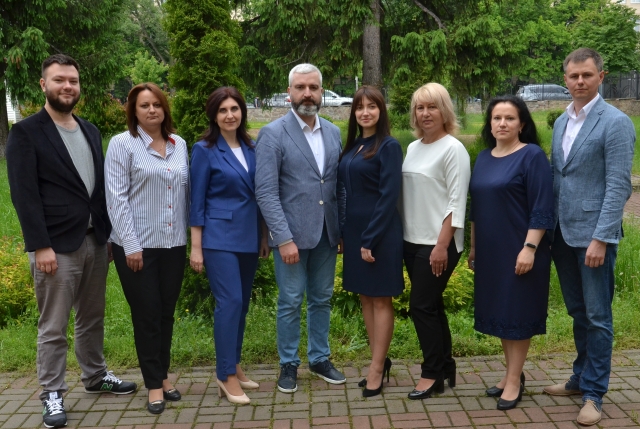 Колектив кафедри, 2016 р. Зліва направо: перший ряд: зав. каф., д.е.н., доц. А. Г. Мартин; другий ряд: зав. лаб. 3. Щ. Кукушев, к.е.н., доц. О. В. Кустовська, к.е.н., доц. І. П. Гетманьчик, к.е.н., доц. Л. А. Гунько, к.е.н., доц. О. М. Чумаченко, лаб. А. А. Колос