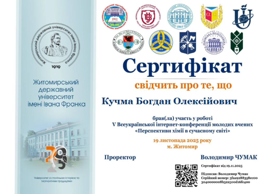 Керівником студентського наукового гуртка «Зелена хімія» є професор кафедри загальної, органічної та фізичної хімії