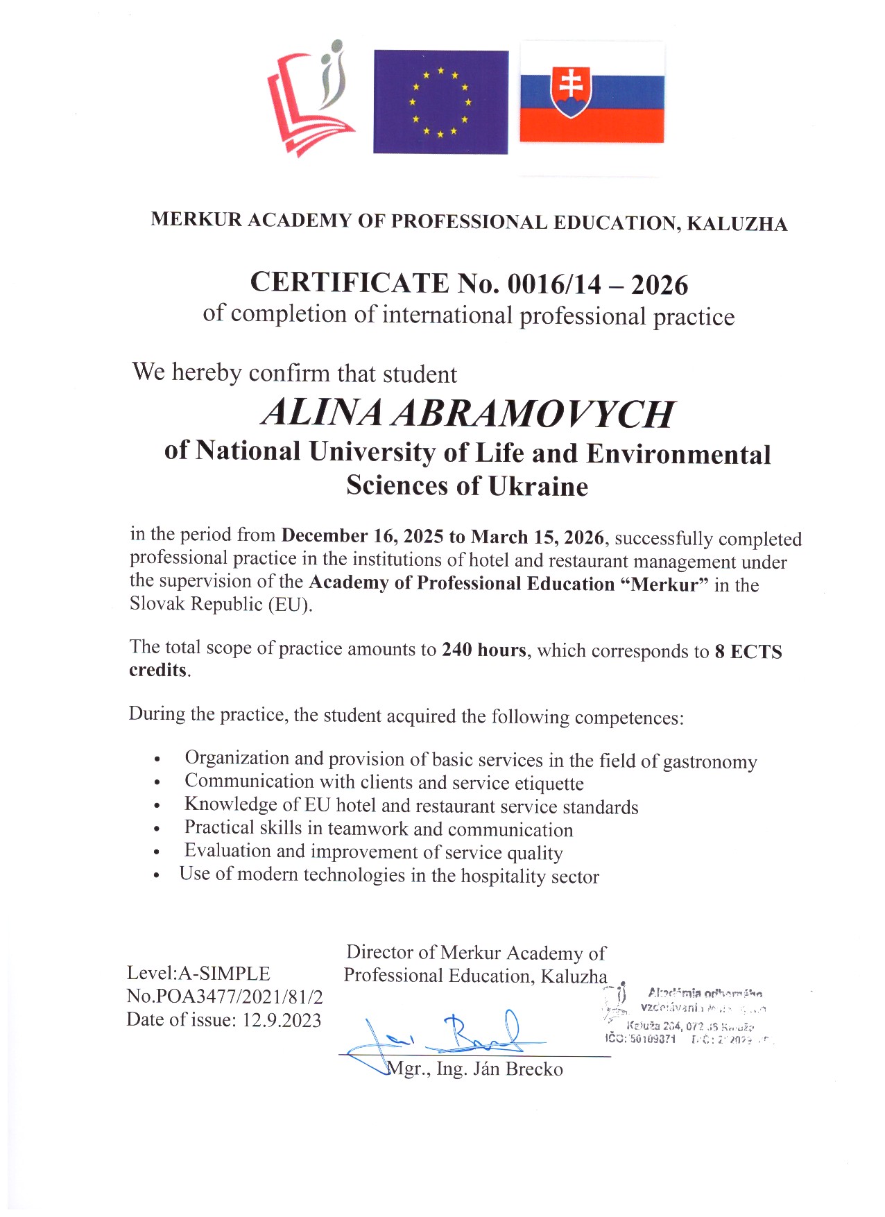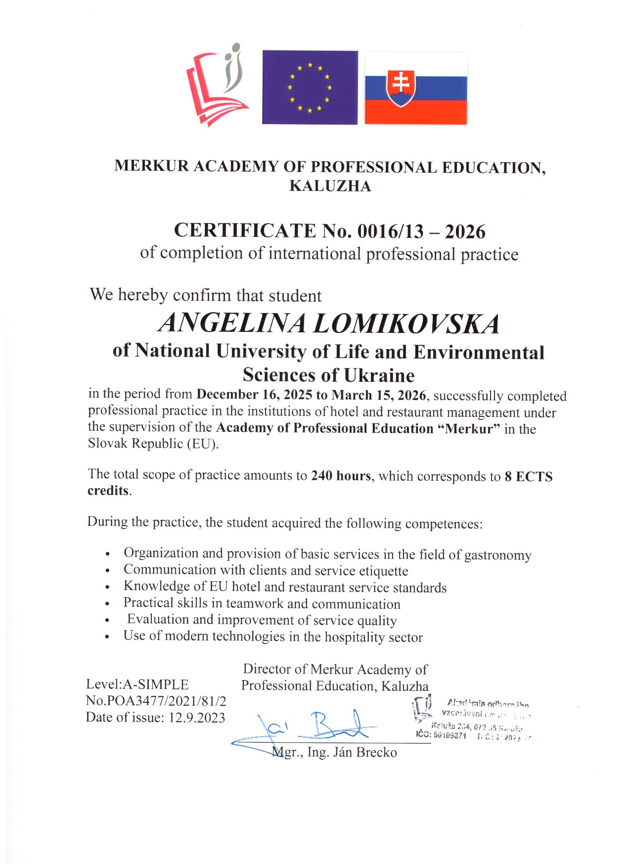 ОС "Магістр" ОП "Готельно-ресторанна справа"