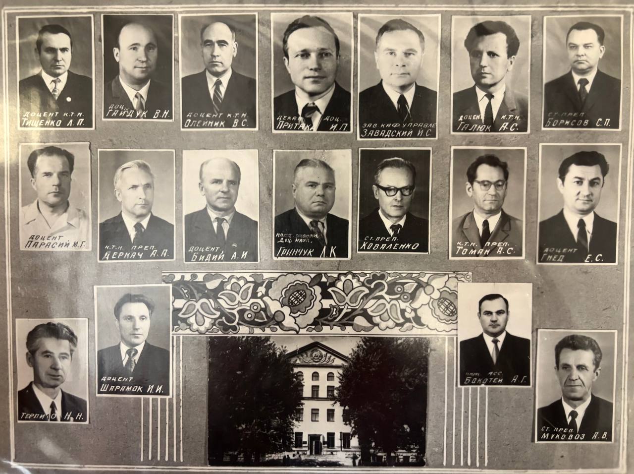 (мова оригіналу: доц., к.т.н. Тищенко Л.П., доц. Гайдук В.Н., доц., к.т.н. Олейник В.С., декан, доц. Притака И.П., зав. каф. управл.. Завадский И.С., доц., к.т.н. Галюк А.С., ст. преп. Борисов С.П., доц. Парасий М.Г., к.т.н., преп. Деркач А.А., доц. Бидий А.И., к.э.н., доц. Гринчук Л.К., ст. преп. Коваленко, к.т.н. преп. Томан А.С., доц. Гнед Е.С., Терпило Н.Н., доц. Шарамок И.И., инж., асс. Бокотей А.Г., ст. преп. Муковоз А.В.)