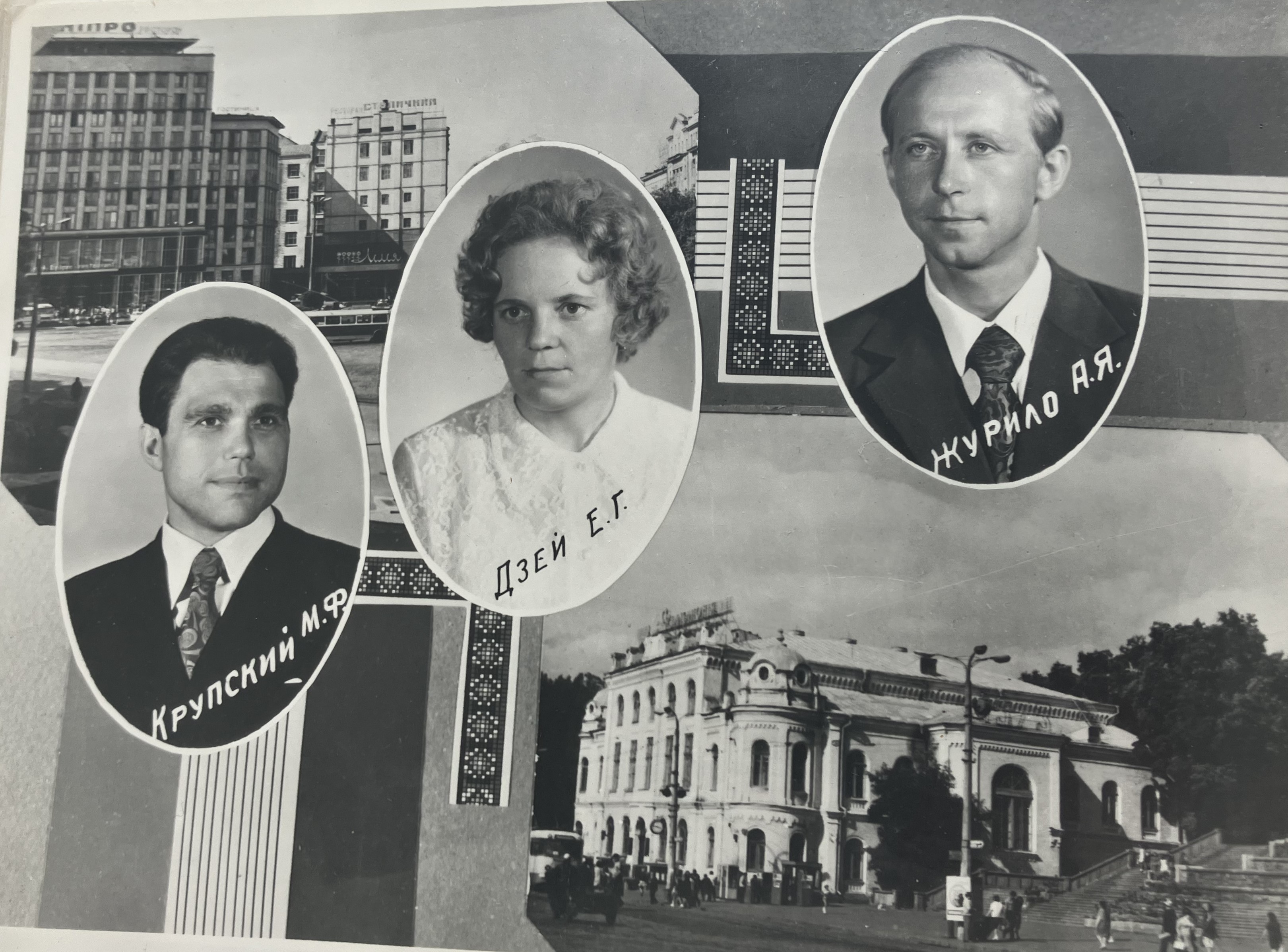 Прізвища, наукові ступені, вчені звання та посади написано транслітерацією з російської мови українською графікою, відповідно до написання в джерелах того часу