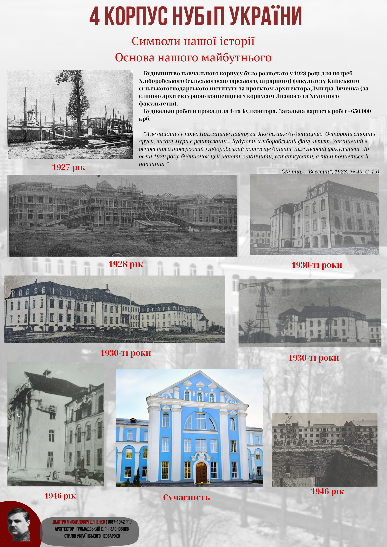У 1926 р. розпочалося масштабне будівництво навчальних корпусів, житлового будинку для викладачів та студентського гуртожитку для Київського сільськогосподарського інституту (нині – НУБіП України). Ця подія стала визначальним етапом у розвитку університету, заклавши підґрунтя для формування сучасного студентського містечка. У травні 2026 р. НУБіП України буде відзначати 100-річчя з початку цього історичного будівництва. З метою підготовки до ювілею студенти 1 курсу спеціальності «Філологія» реалізували студентський проєкт із дослідження історії побудови корпусів. У межах проєкту молоді дослідники вивчали архівні документи, спогади викладачів, а також підготували тематичні матеріали для музею університету.