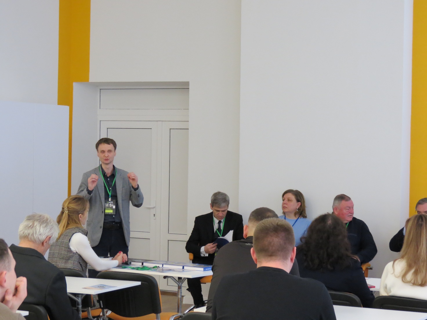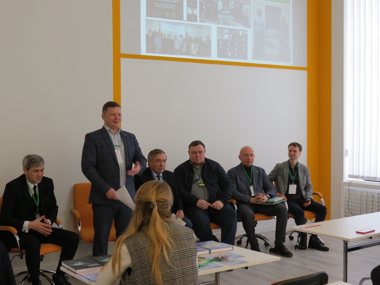 Deputy Dean for International Activities of the Faculty of Construction and Design, Yuriy ROMASEVICH, in his speech, touched upon the interaction of three components of the project: international collaboration, educational, and scientific activities. Without the first component, it is impossible to obtain a reference, that is, a benchmark of high European standards. Scientific activity should realize the creative capabilities of the NCE, avoiding banal and irrelevant topics. The role of the educational part is to transmit the acquired new knowledge to applicants and reinforce their abilities for self-learning. The speaker illustrated his opinion with the example of collaboration with Israeli scientists, which began during the implementation of the COPILOT project, and explained how this work influenced the development of his own scientific trajectory and the content of the educational programs he implemented. In addition, Yuriy ROMASEVICH presented several theses regarding the importance of the initiative of higher education applicants, which can help overcome the challenges of human capital development in our country.
