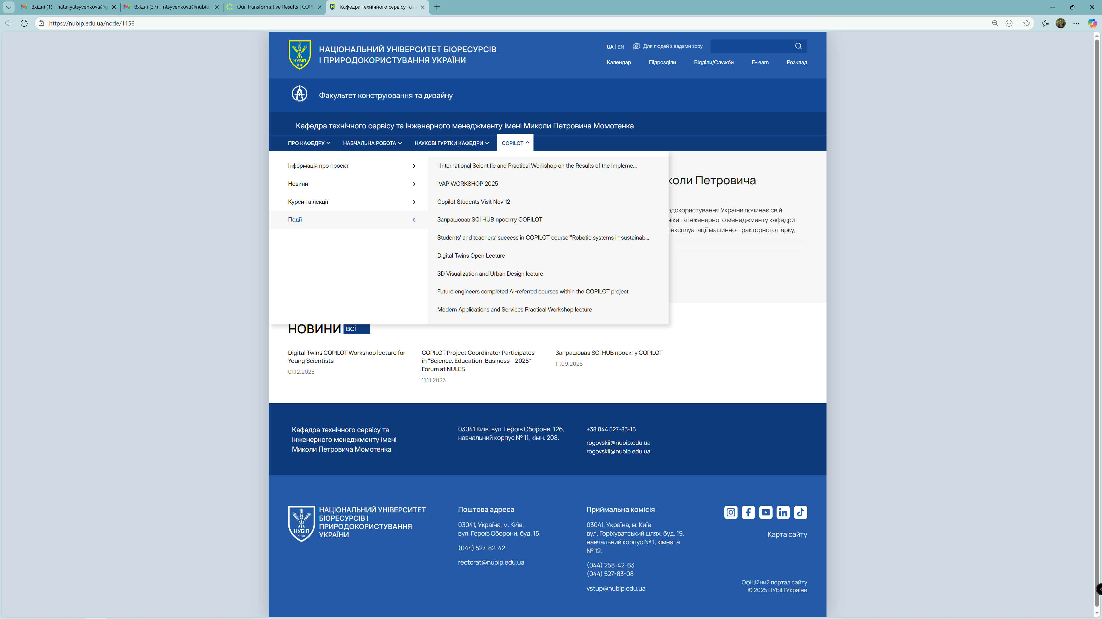 On December 29, 2025, based on the Faculty of Engineering and Design of the National University of Life and Environmental Sciences of Ukraine, the International Scientific and Practical Workshop was held on the results of the implementation of the first phase of the COPILOT project "Innovations in the field of deep technologies and entrepreneurship for sustainable energy and clean technologies". Oleksandr LABENKO, Vice-Rector for Scientific and Pedagogical Work and International Activities, chaired the event.