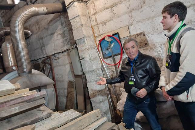 Later, the students visited a machine-building plant, where drawings are directly turned into products. First of all, Professor G.A. Golub demonstrated to the students the operation of a wood-fired heating boiler, which provides rapid heating of the air in the workshop, and, accordingly, comfortable working conditions for employees in winter.