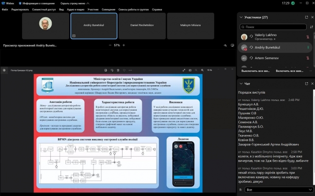 - обговорення напрямів науково-дослідної роботи студентів спеціальностей 125 «Кібербезпека» та 123 "Комп’ютерна інженерія";