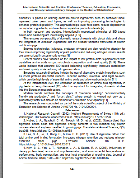 The results obtained not only expanded scientific understanding of protein nutrition mechanisms, but also became an important component of practical training for higher education seekers in accordance with the goals and competencies of the educational program focused on developing students' ability to work with innovative feed technologies, implement sustainable animal husbandry methods, analyze feed quality, manage production processes, and make scientifically sound decisions in the field of animal nutrition and biotechnology. Participation in real state research provides practical experience that cannot be replicated in a classroom setting, and also develops key competencies required by the program: scientific research, analytical, project, and innovative.