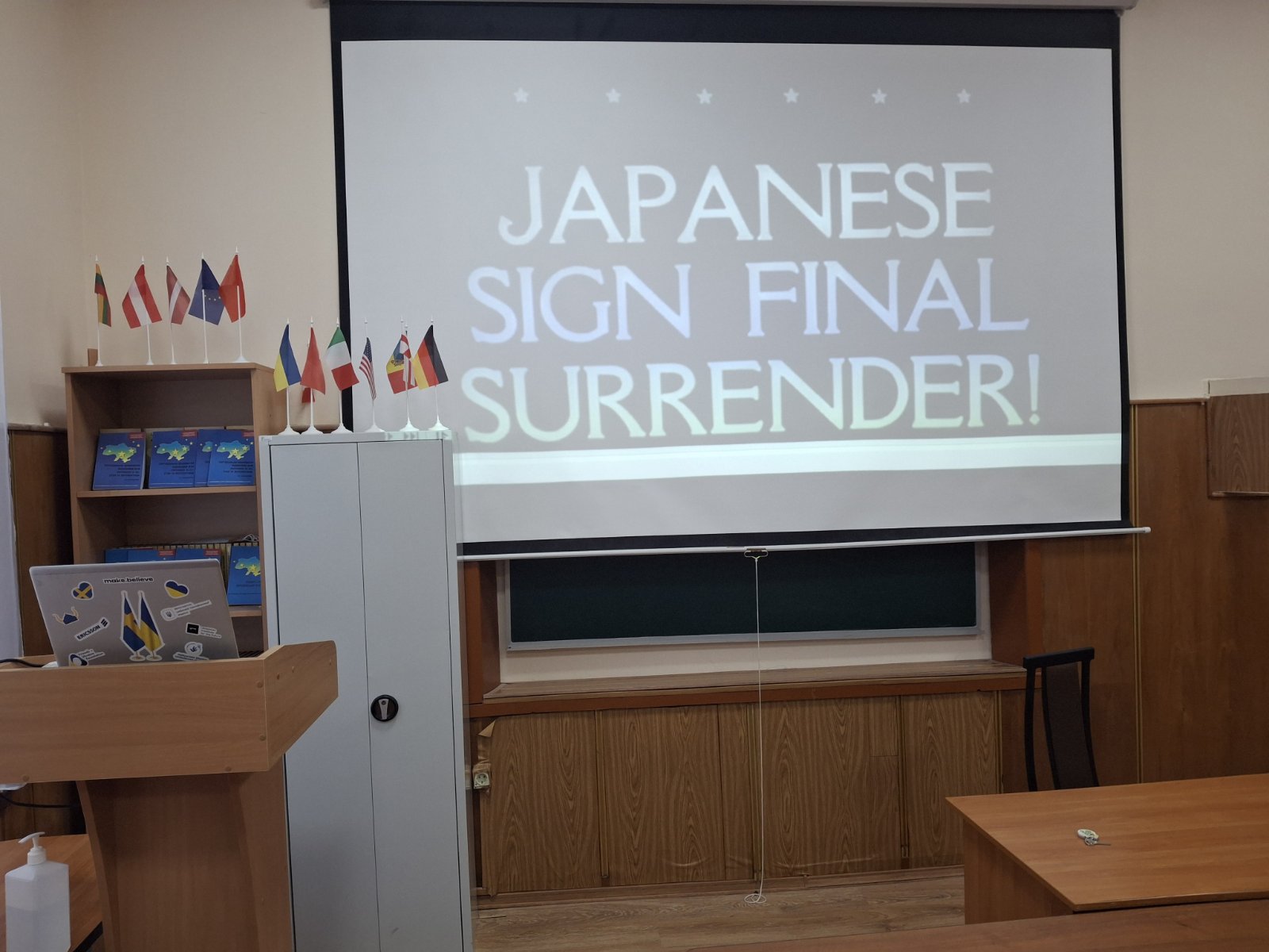 As always, already in September – the very beginning of the academic year – members of the research and educational clubs of the Department of International Relations and Social Sciences, “Information and Politics” and “Diplomacy and Geopolitics”, gather for their creative sessions. This year, the first to meet, already on the second day of studies, were the members of the latter club. On this very day, 80 years ago, the Second World War (WWII) ended victoriously – including for our country – aboard the American battleship Missouri. We must stress that every sixth Ukrainian perished in that war. That is why, on this day of solemn remembrance with tears in our eyes, it was especially important to once again analyze the most pressing aspects of the causes of the war, the course of events, the world-historical significance of its conclusion, its main consequences, and its echoes in today’s globalized and, as 80 years ago, restless world.