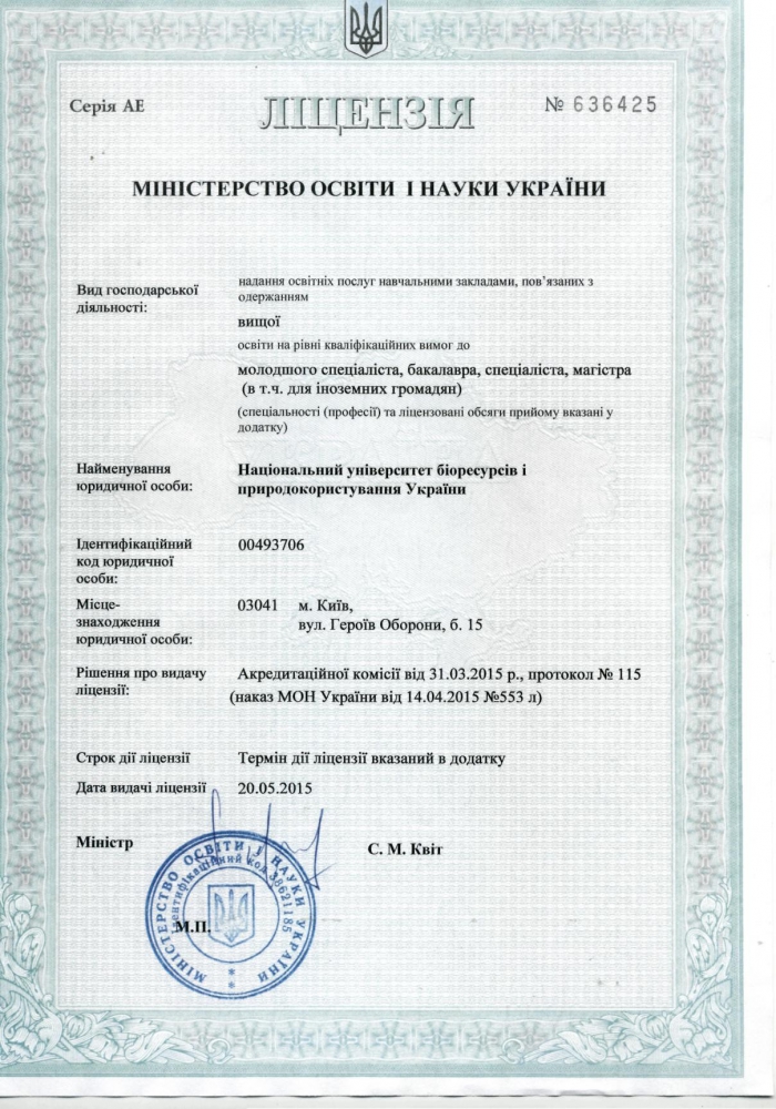 Наказ МОН України про переоформлення ліцензії для НУБіП України