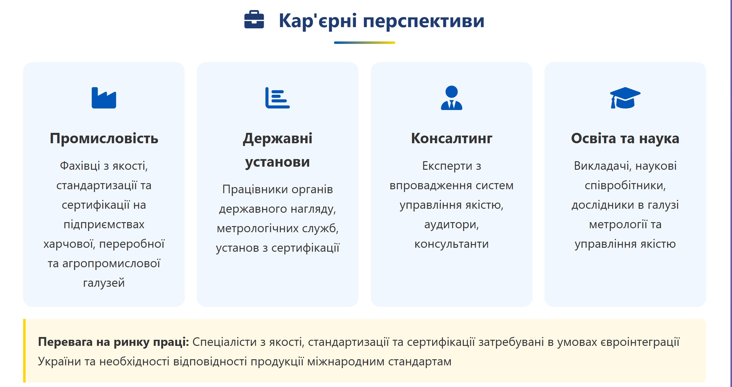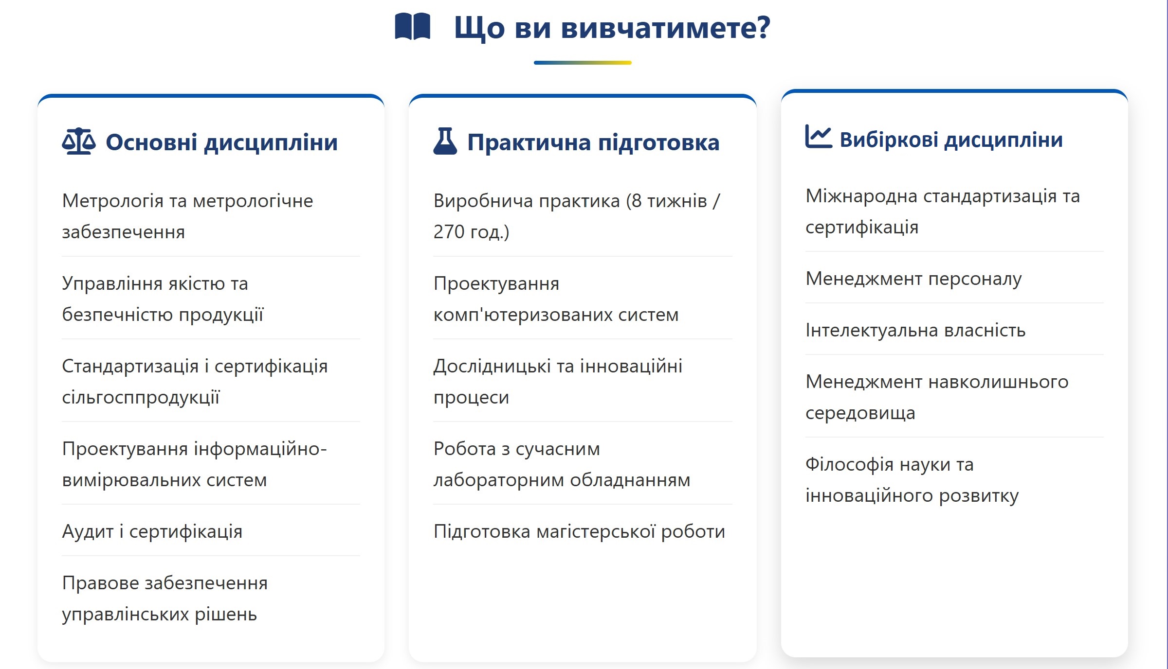 Ти прагнеш стати затребуваним фахівцем, який гарантує якість та безпечність продукції? Хочеш розбиратися у вітчизняних і міжнародних стандартах та керувати системами якості на провідних підприємствах? Тоді ця програма саме для тебе!