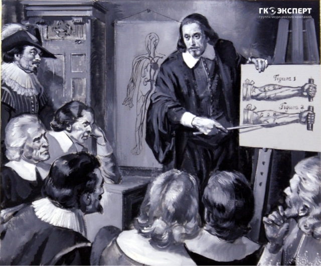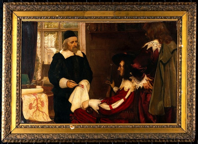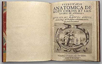 Відкриття кровообігу. Праця Гарвея «Анатомічне дослідження про рух серця і крові у тварин» (Exercitatio anatomica de motu cordis et sanguinis in animalibus) була опублікована в 1628 році у Франкфурті.