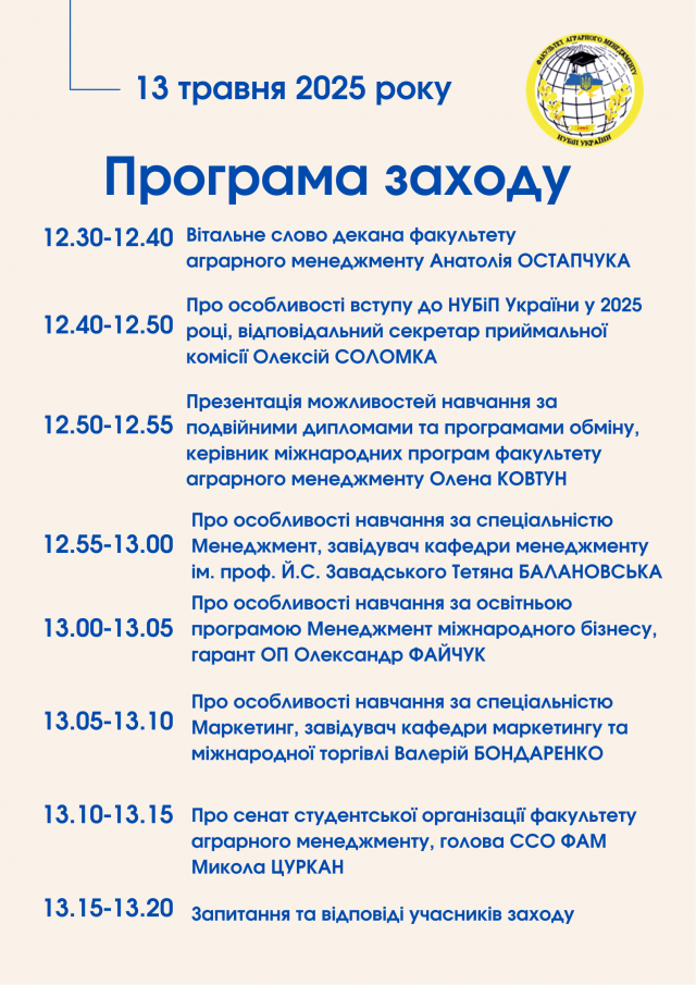 ФАКУЛЬТЕТ АГРАРНОГО МЕНЕДЖМЕНТУ НАЦІОНАЛЬНОГО УНІВЕРСИТЕТУ
