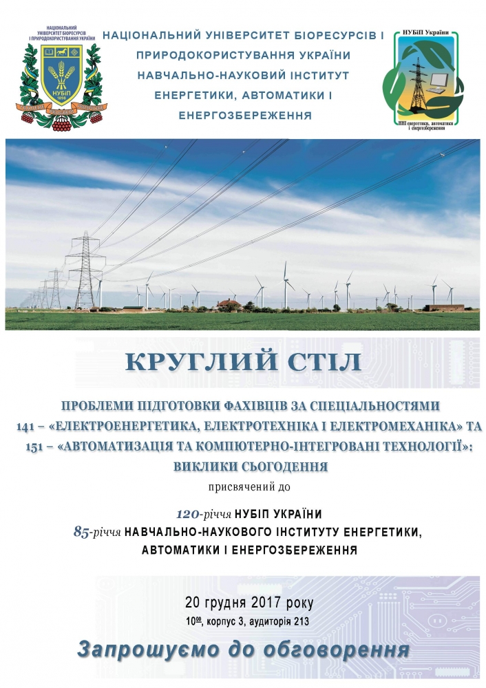 20 грудня 2017 - Круглий стіл в ННІ енергетики, автоматики і енергозбереження 13 грудня 2017 року 02:00 - 02:00