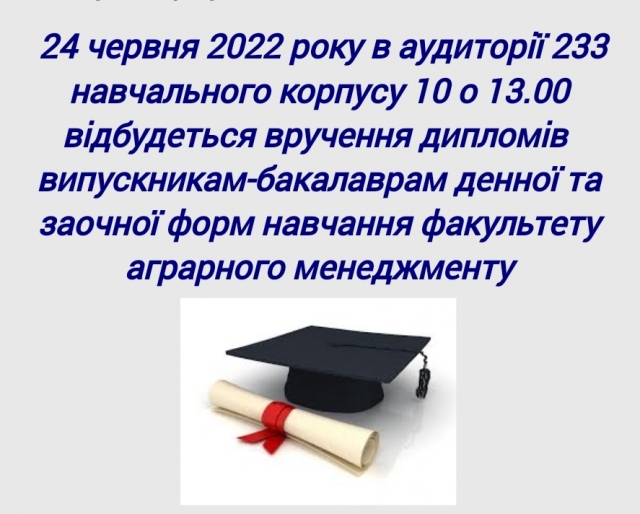 24 червня 2022 року відбудеться вручення дипломів бакалавра