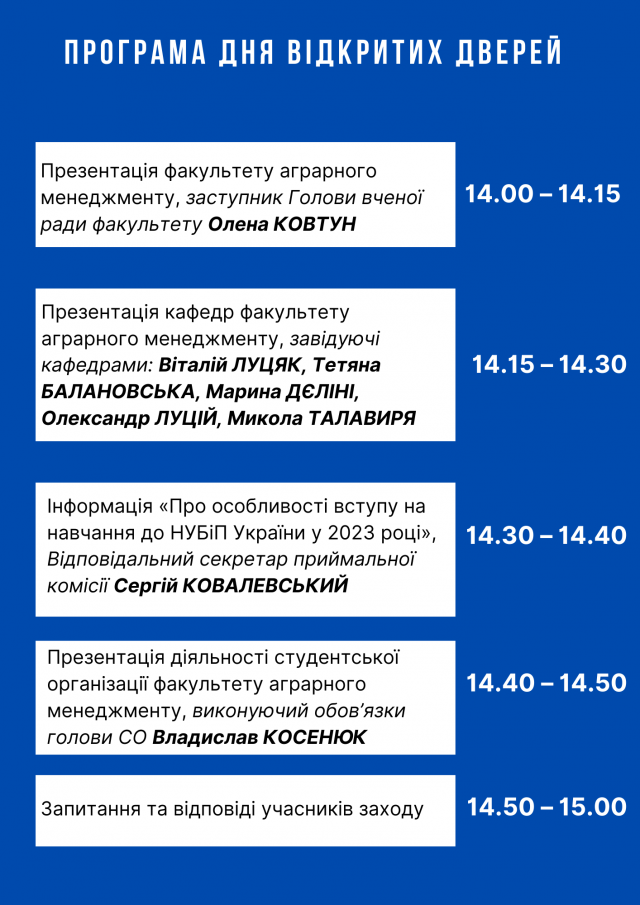 28 лютого - День відкритих дверей на факультеті аграрного менеджменту