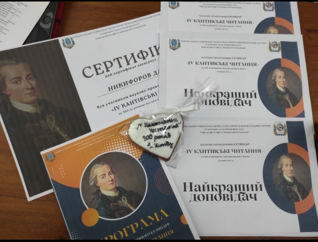 Завершальною частиною заходу було вручення сертифікатів учасникам, що стали символом їхньої праці та внеску у вивчення спадщини І. Канта. Смачним бонусом до сертифікатів стали ювілейні пряники.