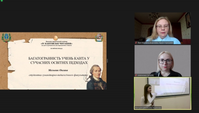 Модератором та ініціатором заходу виступила асистент кафедри філософії та міжнародної комунікації Вікторія Шеховцова-Бурянова. Вона зазначила, що четвертий рік поспіль наша кафедра проводить "Кантівські читання", які вже стали традиційними.