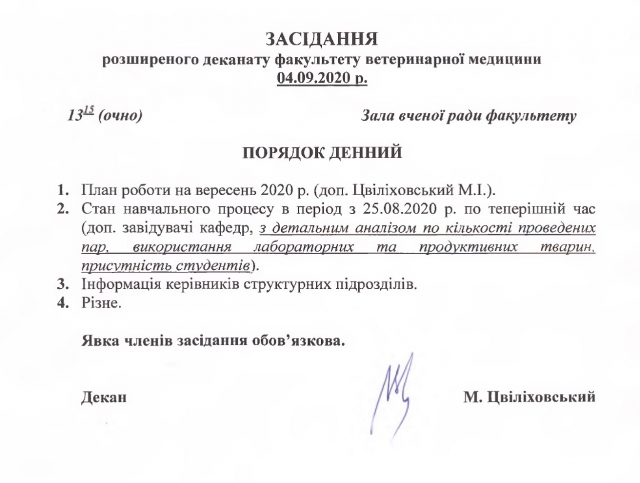 4 вересня відбудеться засідання розширеного деканату