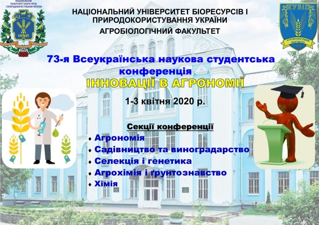 73-я Всеукраїнська наукова студентська конференція "ІННОВАЦІЇ В АГРОНОМІЇ"