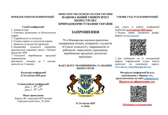 яка відбудеться 23-24 квітня 2025 року на базі факультету тваринництва та водних біоресурсів НУБіП України