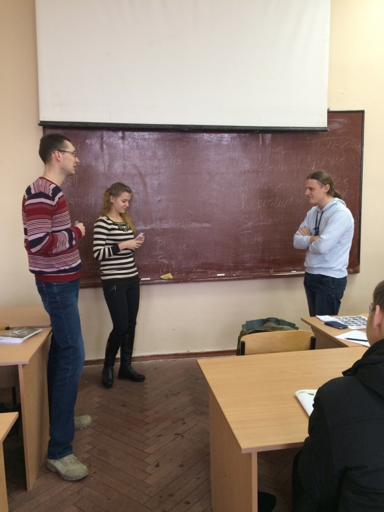 У рамках тижня англійської мови і тижня міжнародної освіти в Україні (10.11.2016 – 16.11.2016) викладачі кафедри англійської мови для технічних та агробіологічних спеціальностей доц. Яременко Н.В. та ст. викладач Поліщук О.С. 18.11.2016 провели спільне заняття “Active games” зі студентами 1 і 2 курсів спеціальності «Біотехнологія», чим викликали жвавий інтерес, дух суперництва і захоплення таким вивченням мови.