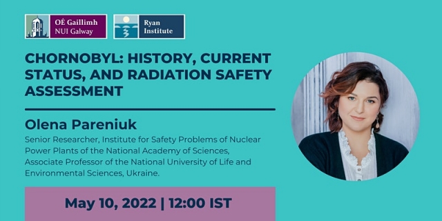 In this Ryan Institute webinar, Dr. Olena Pareniuk, an expert in nuclear power plants safety, will speak about the history of the 1986 accident as well as about the nuclear plant in the context of the 2022 war, both for the environment and for the global political structures. She will also offer an insight into approaches to assess global radiation safety. Dr. Pareniuk is a collaborator of Ryan Institute Principal Investigator Dr. Alexandre Menezes.