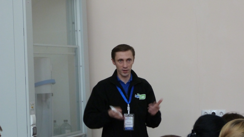 Олександр Гайдай, керівник навчального проекту компанії Agrilab,і Анатолій Бикін, завідувач кафедри агрохімії та якості продукції рослинництва ім. О.І. Душечкіна, разом із студентами обговорили план виїздного заняття, підвели підсумки «польових десантів», здійснених цього року і поділились планами на майбутнє. Анатолій Вікторович звернув увагу студентів на загострення потреби сучасного ринку праці у висококваліфікованих фахівцях із агрохімії, що підтвердили спеціалісти із компанії «Agrilab», і побажав студентам ефективно використати надану їм можливість у підвищенні своїх професійних знань.