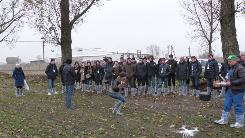 У межах практичної частини заняття студенти під керівництвом Євгенія Гирявенка (спеціаліста компанії «Agrilab») та Володимира Махоти провели безпілотний моніторинг посівів озимини на полях ТОВ «Біотех ЛТД» та візуально оцінили розвиток рослин. Разом із Владиславом Лавріненком (спеціалістом компанії «Agrilab») вони здійснили безпосередній огляд рослин у полі і облік густоти.