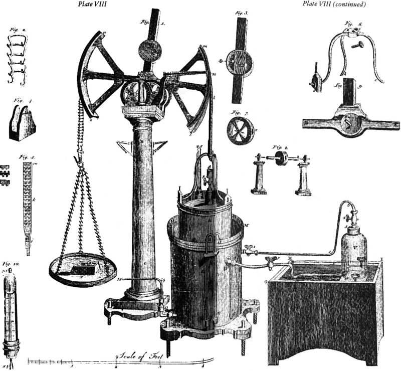 Ваги Лавуазьє для визначення маси реагентів і продуктів реакції (гравюра Марії-Анни Польз в «Traité Élémentaire de Chimie»)
