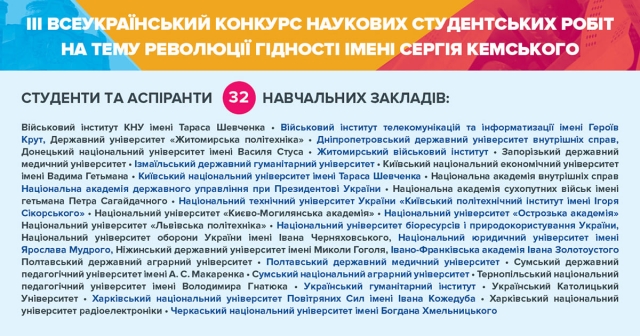Шеховцова-Бурянова Вікторія – аспірантка кафедри філософії та міжнародної комунікації з темою ««Вплив Революції Гідності на національну ідентичність українців» пройшла у другий тур Всеукраїнського конкурсу наукових робіт на тему Революції Гідності Відзнака імені Сергія Кемського.