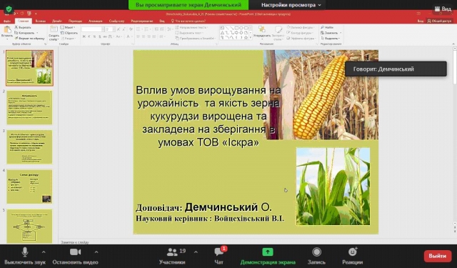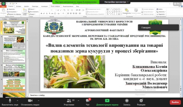12.03.21 на кафедрі технології зберігання, переробки та стандартизації продукції рослинництва пройшла атестація магістрів першого року навчання. Студенти розповідали про мету своєї роботи, описували схему проведення досліджень та доповідали про уже отримані результати. В обговоренні доповідей активно приймали участь не лише викладачі кафедри, але й самі студенти. В цілому все пройшло динамічно, по-діловому та в дружній атмосфері. Підводячи підсумок завідувач кафедри проф. Подпрятов Г.І. закликав магістрів і надалі так активнно працювати.