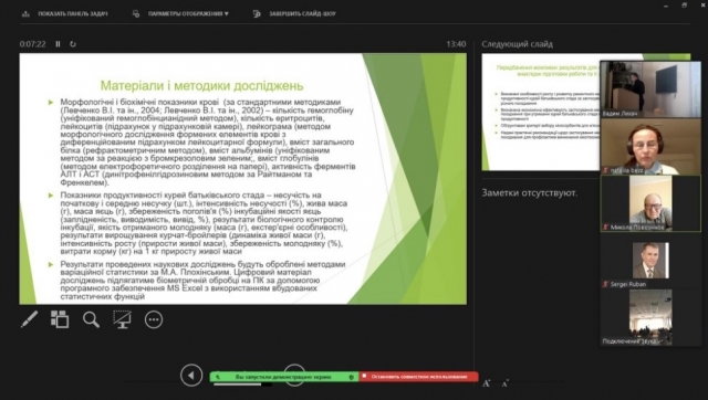 В рамках наукової дискусії та опрацювання матеріалів звітів молодих науковців, комісія у складі: гаранта ОНП 204 - «ТВППТ» проф. Рубана С.Ю., директора НДІ доц. Уманця Д. П., завідувача кафедри бджільництва проф. Повозніков М.Г., проф. Туринського В.М. та інших поважних науковців та практиків вирішила звіти та теми, методики - затвердити, аспірантів - атестувати.