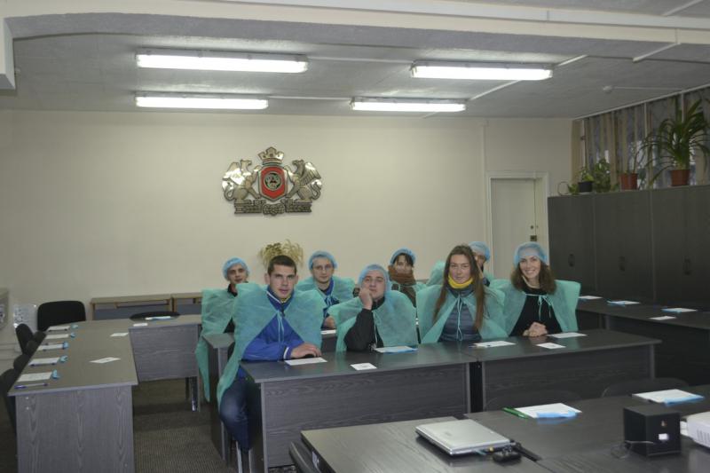 Перед екскурсією у навчальному класі студентам продемонстрували відеоролик про підприємство, його виробничі потужності, дочірні підприємства, а також наочно продемонстрували, як відбувається процес формування тари для напоїв, їх фасування, розлив, маркування та пакування.