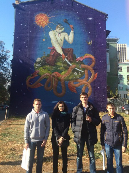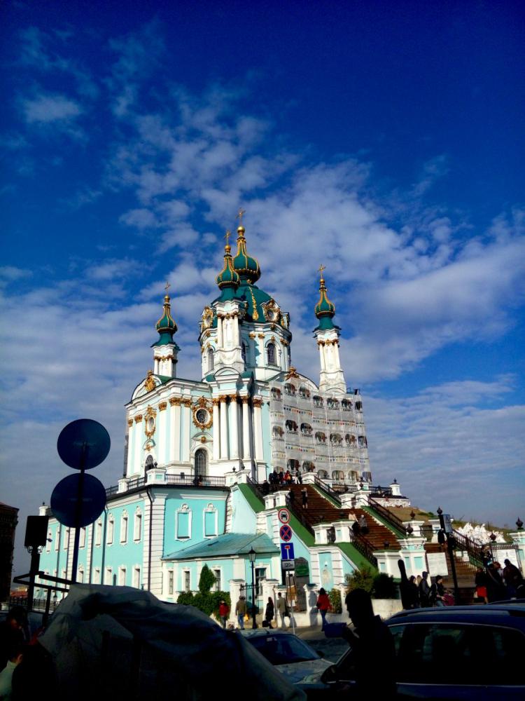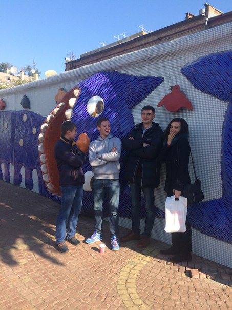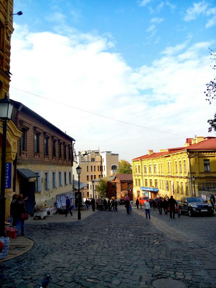 After the exhibition we had an excursion around Kyiv presented by our English teachers. The weather improved, so it became warm and the sun treated us kindly. At first we went to Landscape Alley, one of the most interesting places of modern art in Kyiv. It's located on an Old Kyiv Hill and it has many fantastic statues, playgrounds and unusual benches. Then we went to the Andrew's Descent, which is also beautiful. While walking across the descent, we could see all the charm of old Kiev. I liked these places so much. Then teachers, my friends and I decided to climb the observation desk, and up to me it was the greatest idea, because we saw the whole Old Kyiv. Of course, we've made a lot of photos. At the end of this exciting journey we walked to the new Kiev River Station. There was a gorgeous embankment and maybe one of the still working fountains at this time of a year.