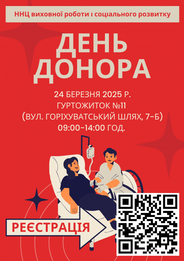 Донація проходитиме у гуртожитку №11 (вул. Горіхуватський шлях, 7-Б).