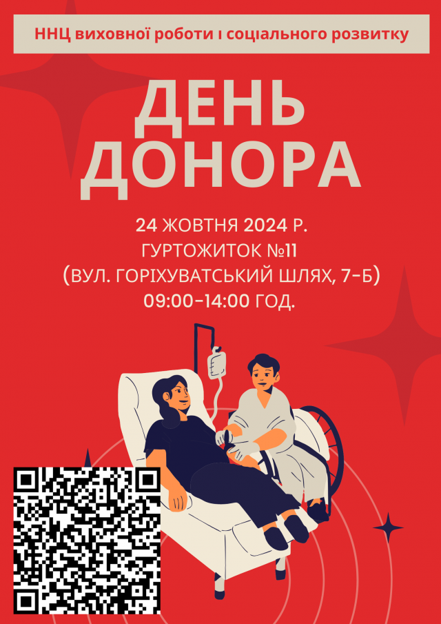 Донація проходитиме у гуртожитку №11 (вул. Горіхуватський шлях, 7-Б).