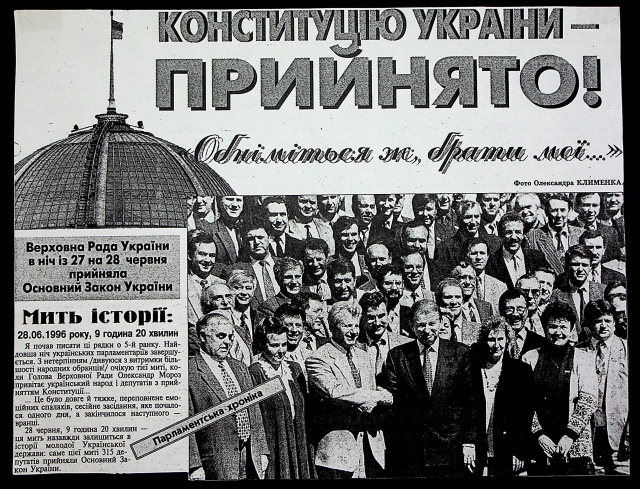 28 червня 1996 року Верховна Рада України прийняла Основний закон – першу Конституцію новітньої Української держави. З прийняттям цього доленосного документа було закріплено правові основи незалежної України, її суверенітет і територіальну цілісність. Конституція врахувала історичний досвід українського народу та кращі світові традиції. Основний закон визначив найціннішим життя людини, її здоров’я, честь і гідність, надав кожному українцю можливості для самоорганізації, свободу слова та віросповідання.
