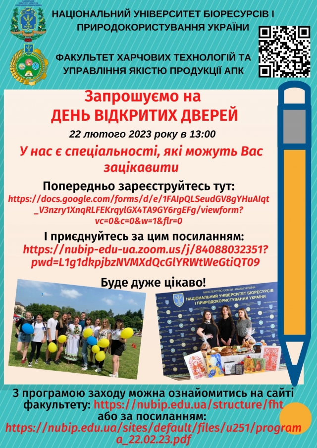 День відкритих дверей на факультеті харчових технологій та управління якістю продукції АПК 20 лютого 2023 року 19:34 - 19:34