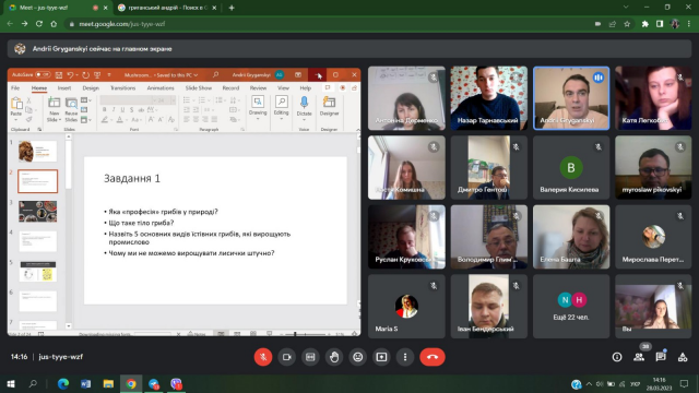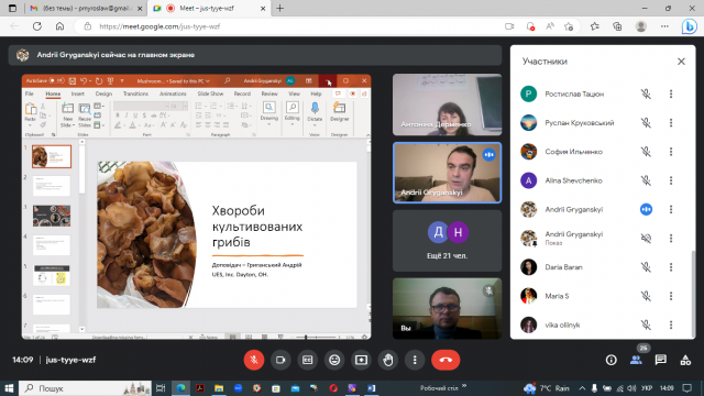 Для здобувачів ОР "Магістр", "Бакалавр" спеціальності 202 «Захист і карантин рослин» 28.03. 2023р. була проведена гостьова лекція на тему: Хвороби їстівних грибів (Diseases of edible mushrooms). Її лектором виступив доктор філософії, міколог, дослідник в UES, Inc. м. Дейтон, штат Огайо (Сполучені Штати Америки) – Андрій Григанський (Andrii Gryganskyi). Його наукова і виробнича діяльність протягом 25 років тісно пов’язана із культивованими грибами у провідних світових компаніях і наукових установах: (Lambert Spawn (США), Weser Champignon (Німеччина), Інституті ботаніки ім. М.Г. Холодного НАН України. Андрій Пилипович також започаткував напрям досліджень хвороб культивованих грибів у НУБіП України.