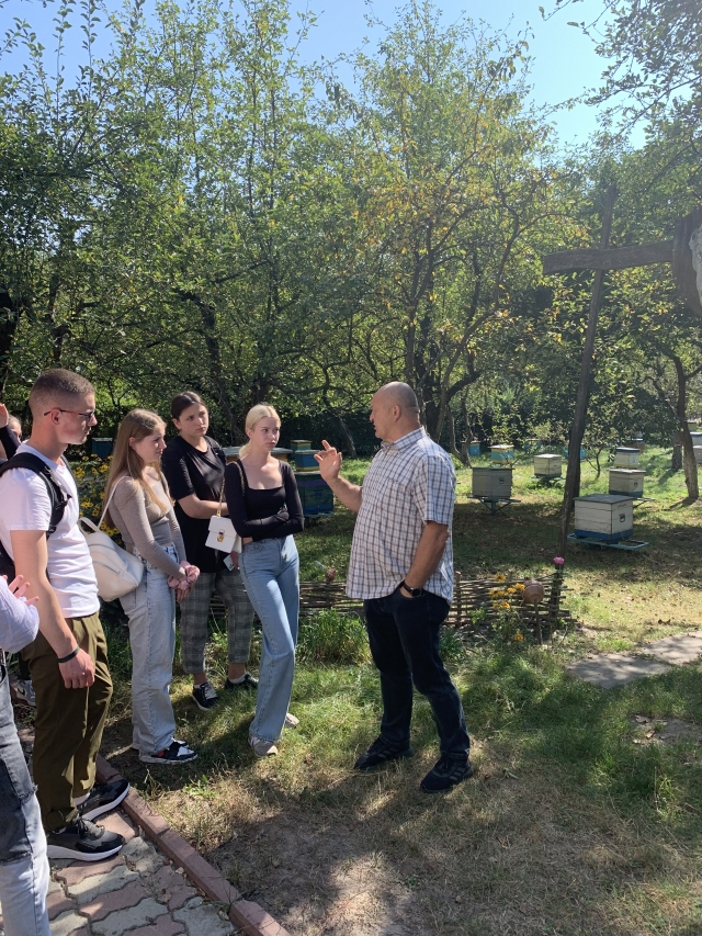Якраву доповідь, яка була насичена різноманітними прикладами та науковими фактами, презентував завідувач кафедри бджільництва, доктор сільськогосподарських наук, професор Повозніков Микола Гаврилович під час екскурсії на головній пасіці університету, яку було проведено для студентів 1 курсу 7 групи та наставника групи, доцента кафедри фармакології, паразитології та тропічної ветеринарії Гончарова Сергія Леонідовича.