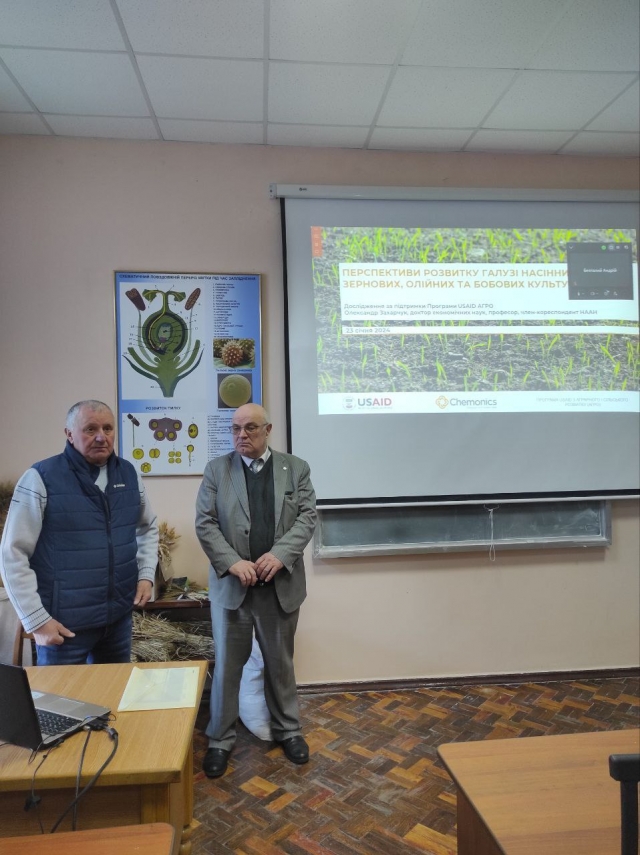 Він розповів про сиьуацію, що склалася в Україні з фальсифікацією насіннєвого матеріалу." Розповів про відмінності між вітчизняним та закордонним законодавством в сфері насінництва.