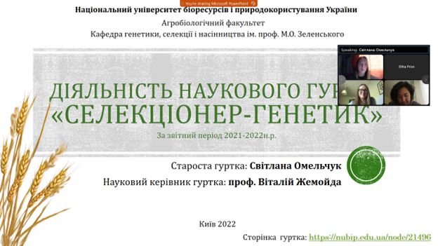 Діяльність студентського наукового гуртка "Селекціонер генетик" в 2021-2022 рр.