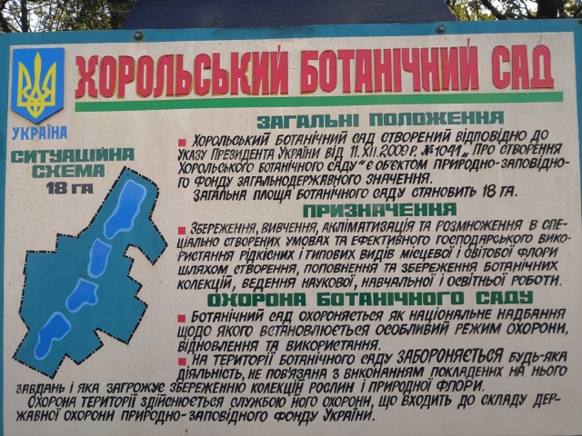 Хорольський ботанічний сад є наймолодшим ботанічним садом України. Одним з основним напрямків його роботи є інтродукція, вивчення та розмноження плодових культур, зокрема рослин субтропічної кліматичної зони. За умов Лісостепу України в ботанічному саду успішно вирощують смоківницю, зизифу, хурму та інші теплолюбні культури світового значення.