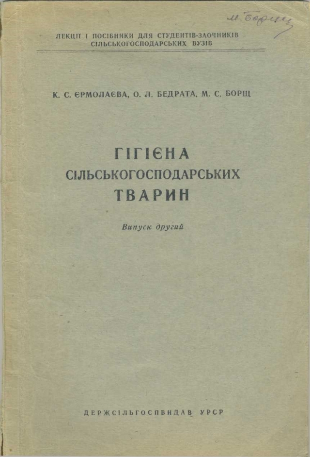 К.С.Єрмолаєва разом із співробітниками кафедри написала та видрукувала ряд лекцій для студентів заочної форми навчання по дисципліні «Зоогігієна»: